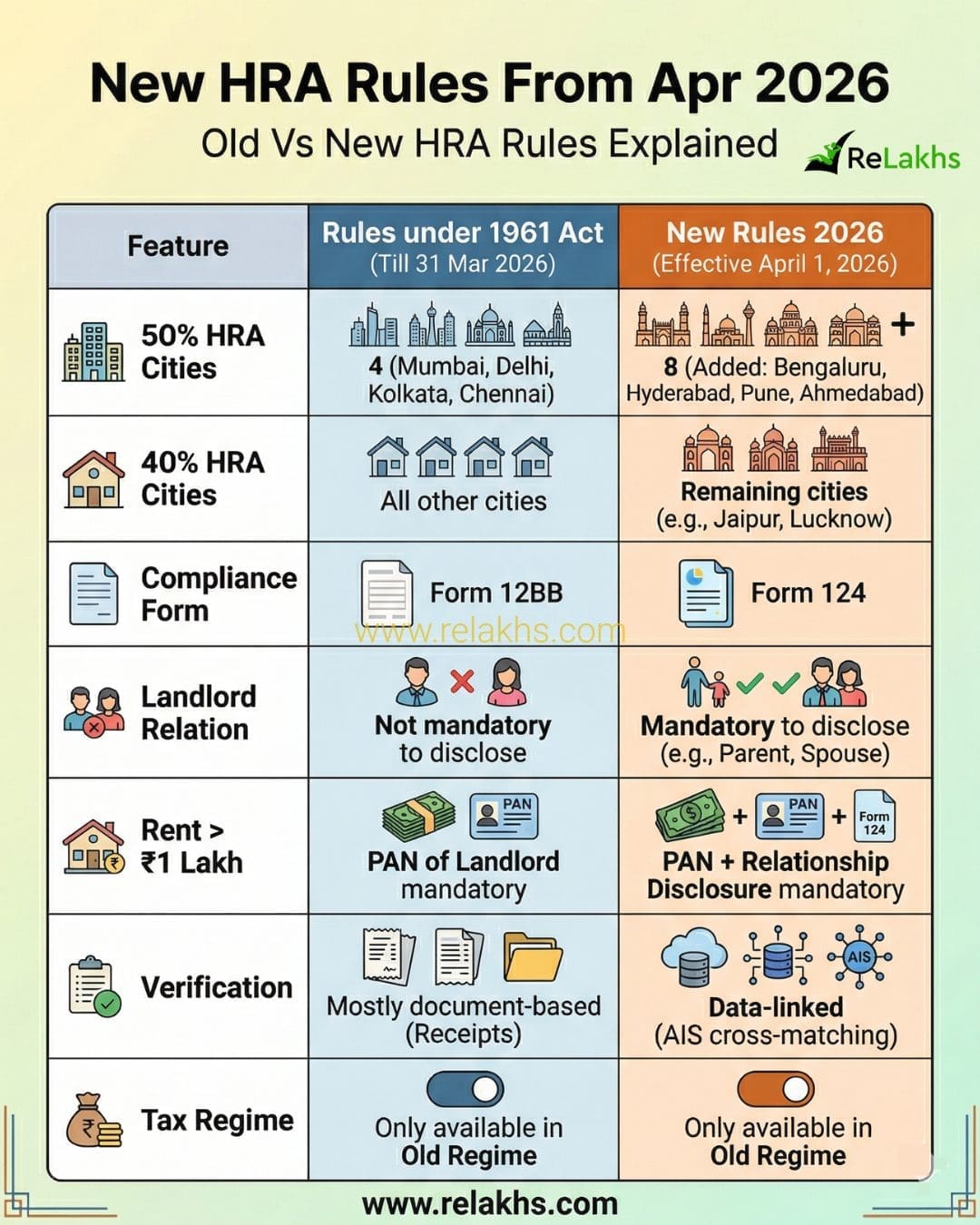 Whereas the usual deduction (₹50,000) and Part 80C limits (₹1.5 lakh) stay unchanged, HRA guidelines have seen a significant enlargement (underneath the Previous Tax Regime):